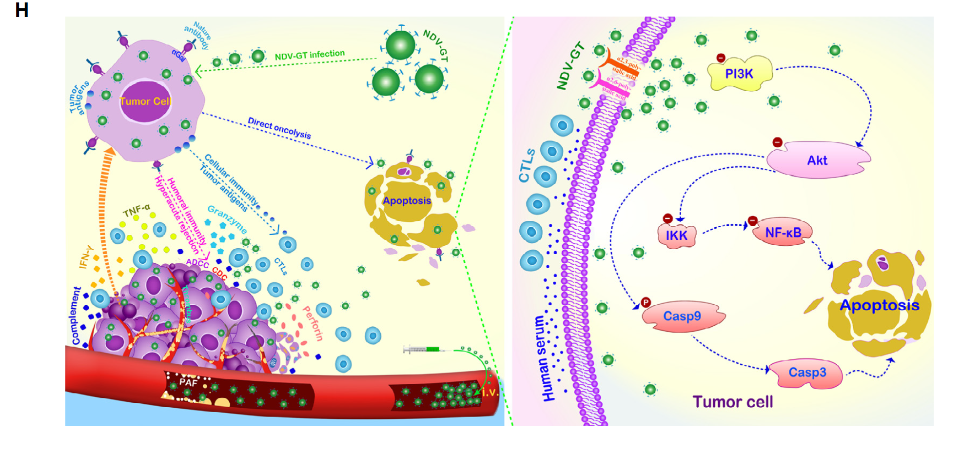 This study illustrates the potential of NDV-GT as an oncolytic virus that can overcome the limitations of existing OVs by enhancing immune responses, improving tumor targeting, and enabling intravenous delivery. It offers promising results for the future of cancer treatment, bridging the gap between preclinical success and clinical application.